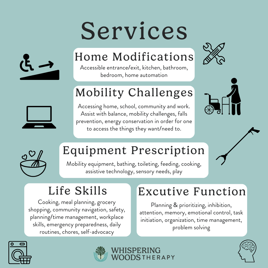 What services does Whispering Woods occupational therapy offer?